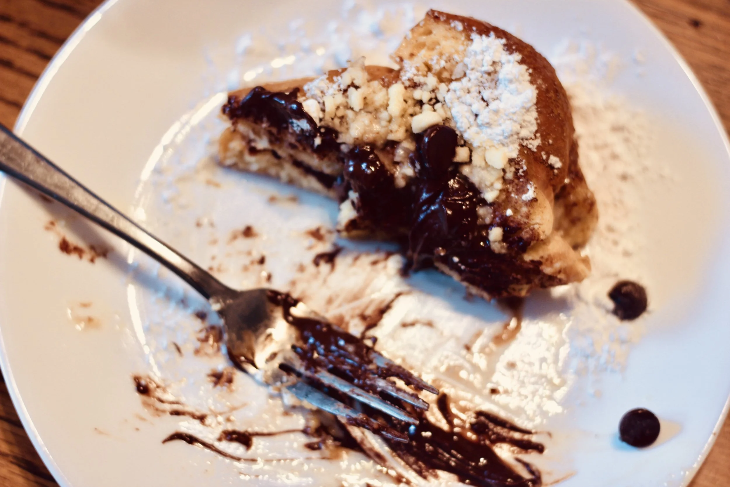 I told you this was easy! This is such a great breakfast meal that tastes best warm and straight off the griddle. The chocolate gets all gooey and the butter melts in all the right places and it’s divine!
