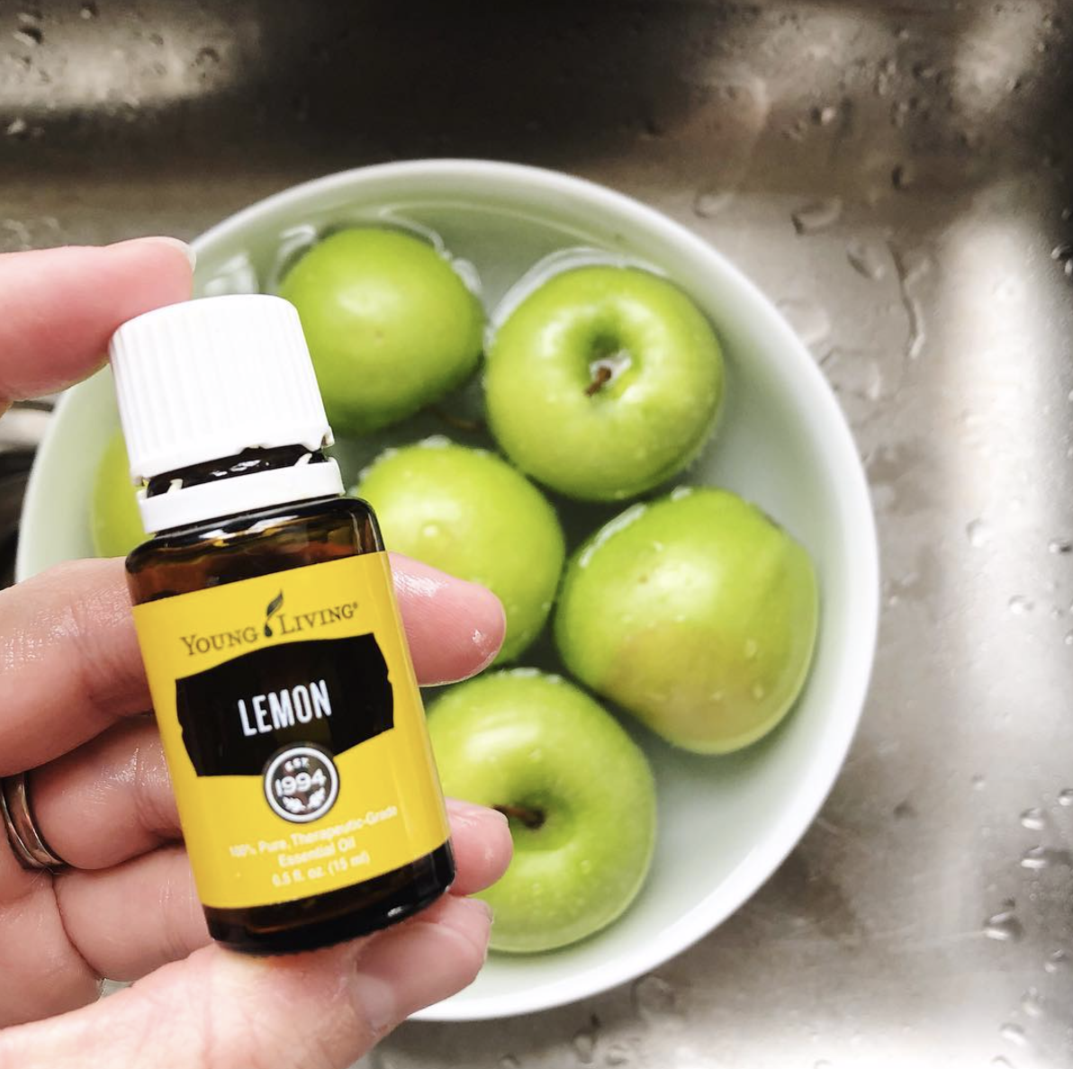 Soak your produce in 2-3 drops of lemon oil or Thieves oil and water for cleansing. But an even better hack is to leave fruits soaking in the lemon water for 5-10 minutes to allow the fruit to absorb the lemon flavor. The longer the produce sits, the more it soaks up that sweet lemon flavor. Lemon strawberries are SO good and for some children, adding that sweet lemon flavor may encourage them to eat blueberries or grapes that they wouldn’t normally eat.